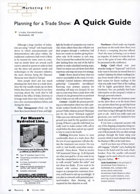 Although a large number of industries are using "virtual" web-based trade shows in which announcements and demonstrations take place online, the traditional conference hall event is likely to be around for some years to come. And no doubt there are several you'll want to attend in-person in order to find out the latest and greatest trends and technologies in the masonry industry, the most obvious being the Masonry Showcase next March in Tampa!