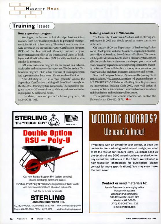 The University of Wisconsin-Madison will be offering several courses in 2003 that should appeal to mason contractors in the area.