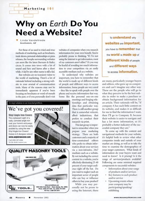 To understand why websites are important, you have to remember that the world is made up of different kinds of people and different ways to access information. Some people are very aural - they like to speak with people over the phone and receive information that way. Some like the personal one-on-one meetings and forging relationships and obtaining data that particular way. There is still another group that is somewhat reticent, albeit industrious, that prefers to conduct their research via print.