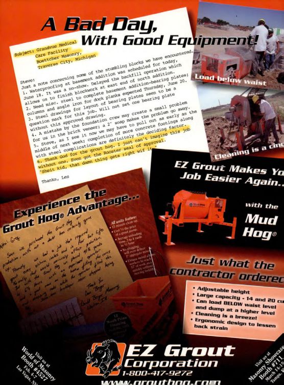 Since we purchased the Grout Hog our production, without a doubt has certainly gone up. Primarily we had a job that required grout every sixteen minutes and in four foot lifts. Normally that would seriously affect production. But with hours the Grout Hog can pound off the yards and filling the cores in C's good hands an experienced operator and shipping rate trickles up while the operator filled the cores.