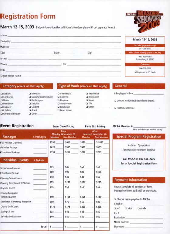 March 12-15, 2003 Badge information (For additional attendees please fill out separate forms.)