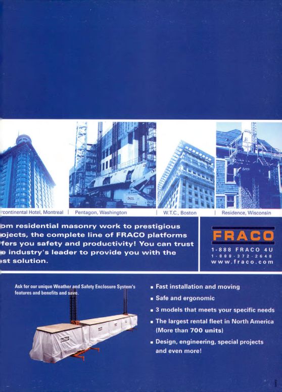 From residential masonry work to prestigious projects, the complete line of FRACO platforms offers you safety and productivity! You can trust the industry's leader to provide you with the best solution.