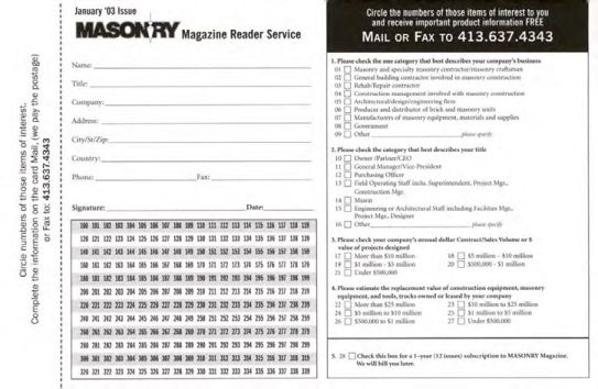 5. 28 Check this box for a 1-year (12 issues) subscription to MASONRY Magazine.