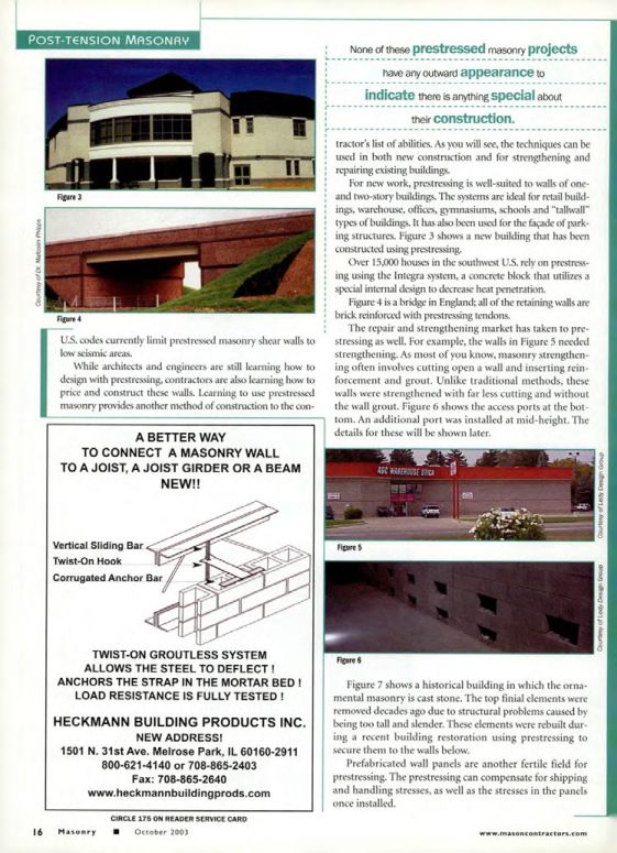 While architects and engineers are still learning how to design with prestressing, contractors are also learning how to price and construct these walls. Learning to use prestressed masonry provides another method of construction to the contractor's list of abilities. As you will see, the techniques can be used in both new construction and for strengthening and repairing existing buildings.