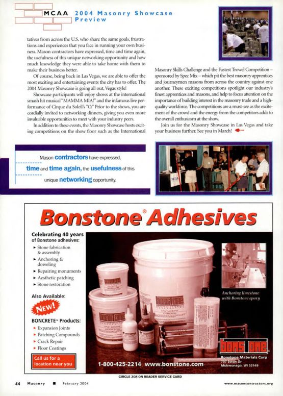 Of course, being back in Las Vegas, we are able to offer the most exciting and entertaining events the city has to offer. The 2004 Masonry Showcase is going all out, Vegas style!