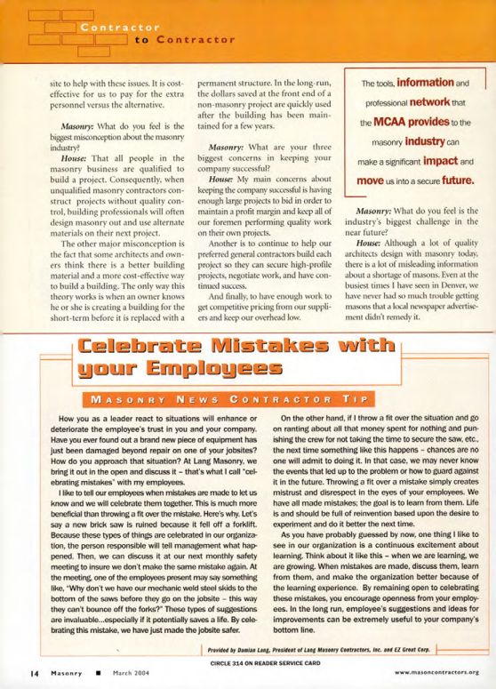MASONRY NEWS CONTRACTOR TIP