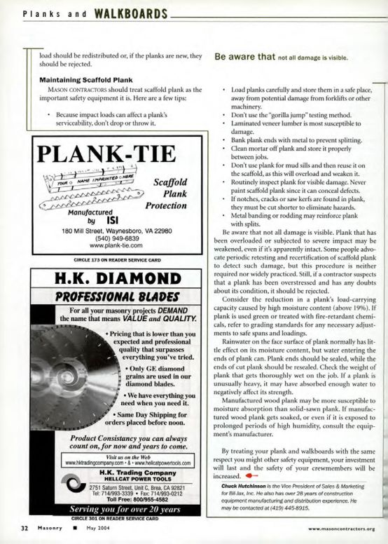 MASON CONTRACTORS should treat scaffold plank as the important safety equipment it is. Here are a few tips: