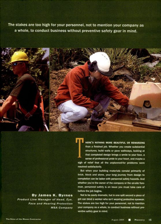But when your building materials consist primarily of brick, block and stone, your long journey from design to completion can be laden with personnel safety hazards. And whether you're the owner of the company or the on-site foreman, personnel safety is an issue you must take care of before the job begins.