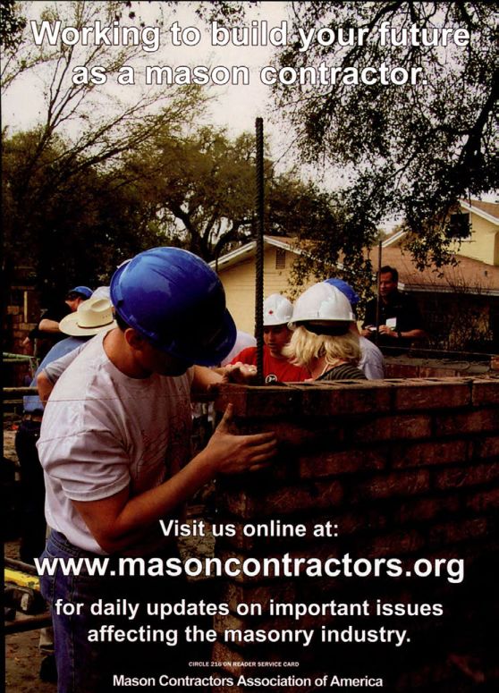 Masonry Magazine August 2004 Page. 21 Masonry Magazine August 2004 Page. 21 Working to build your future as a mason contractor. Visit us online at: www.masoncontractors.org for daily updates on important issues affecting the masonry industry.Mason Contractors Association of America