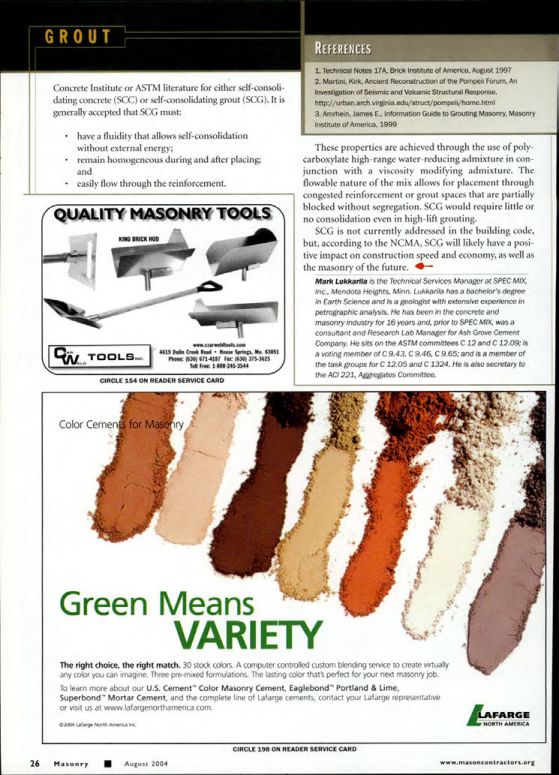 3. Amrhein, James E., Information Guide to Grouting Masonry Masonry Institute of America, 1999