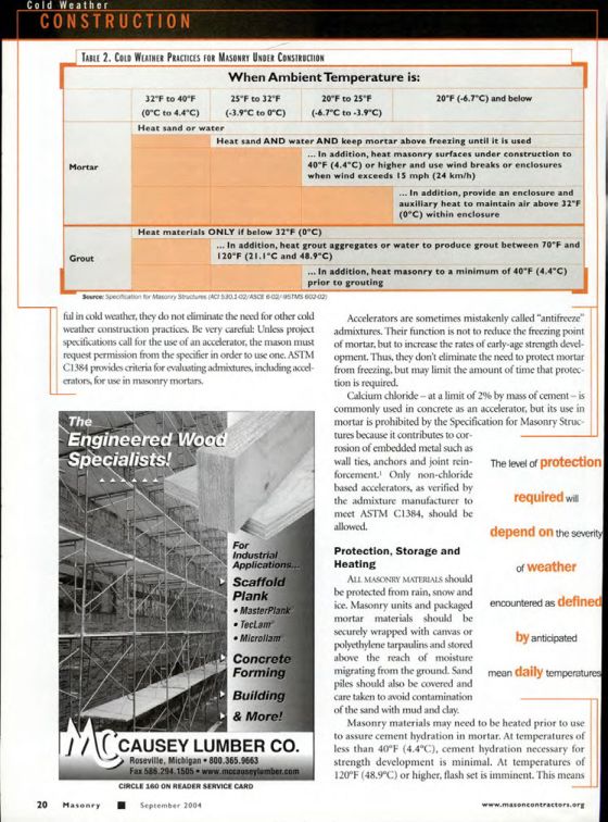 TABLE 2. COLD WEATHER PRACTICES FOR MASONRY UNDER CONSTRUCTION