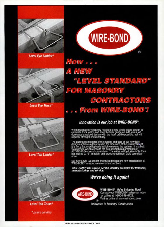 Now... A NEW "LEVEL STANDARD" FOR MASONRY CONTRACTORS ... From WIRE-BOND!
