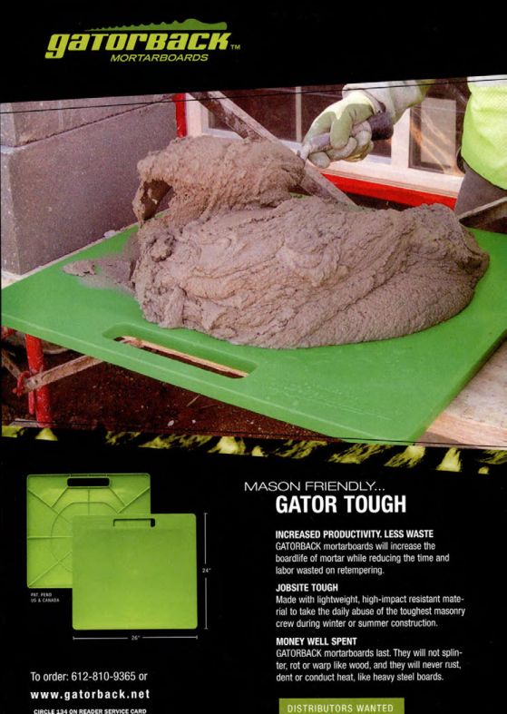GATORBACK mortarboards will increase the boardlife of mortar while reducing the time and labor wasted on retempering.