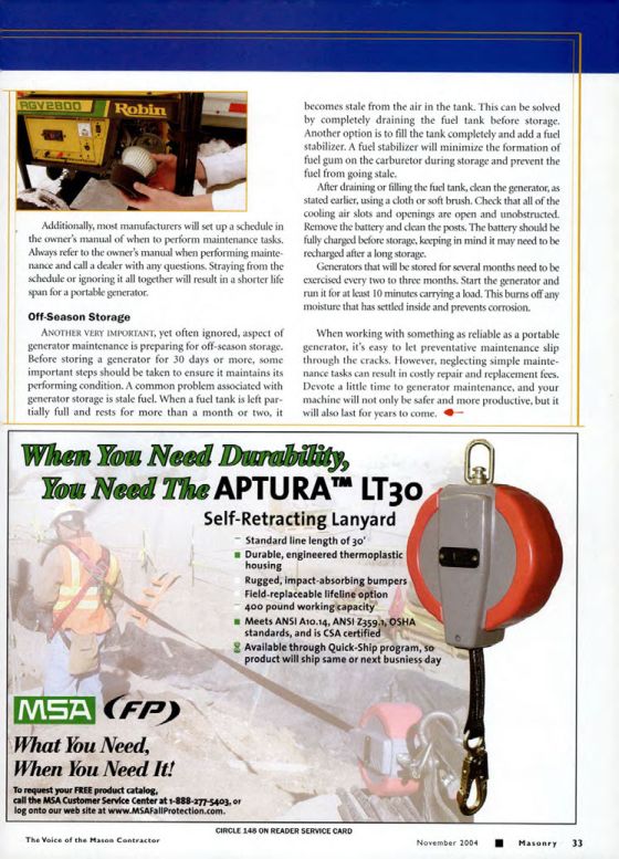 To request your FREE product catalog, call the MSA Customer Service Center at 1-888-277-5403, or log onto our web site at www.MSAFall Protection.com.