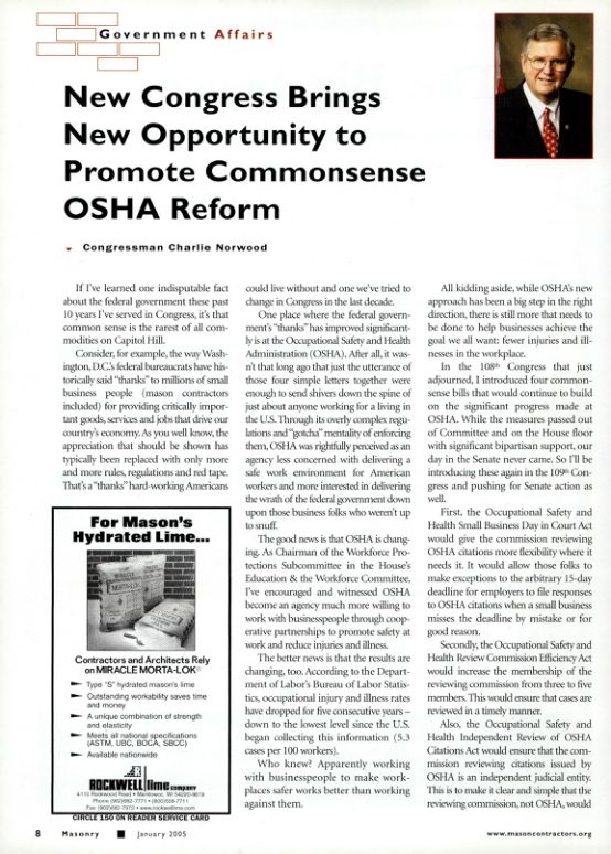 Consider, for example, the way Washington, D.C.s federal bureaucrats have historically said "thanks" to millions of small business people (mason contractors included) for providing critically important goods, services and jobs that drive our country's economy. As you well know, the appreciation that should be shown has typically been replaced with only more and more rules, regulations and red tape. That's a "thanks" hard-working Americans could live without and one we've tried to change in Congress in the last decade.