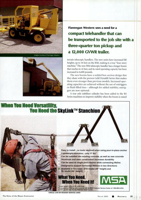 terrain telescopic handlers. The new units have increased lift heights, up to 44 feet on the RS8, making it a true "four-story machine." The new RS6 telescopic handler has a longer boom that reaches to 42 feet, and its rated operating capacity has been increased to 6,600 pounds.