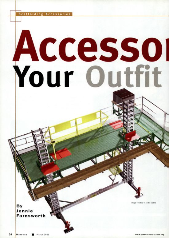 Masonry Magazine March 2005 Page. 26 Masonry Magazine March 2005 Page. 26 Scaffolding AccessoriesAccessoYour OutfitByJennieFarnsworth24MasonryMarch 2005Image courtesy of Hydro Mobilewww.masoncontractors.org