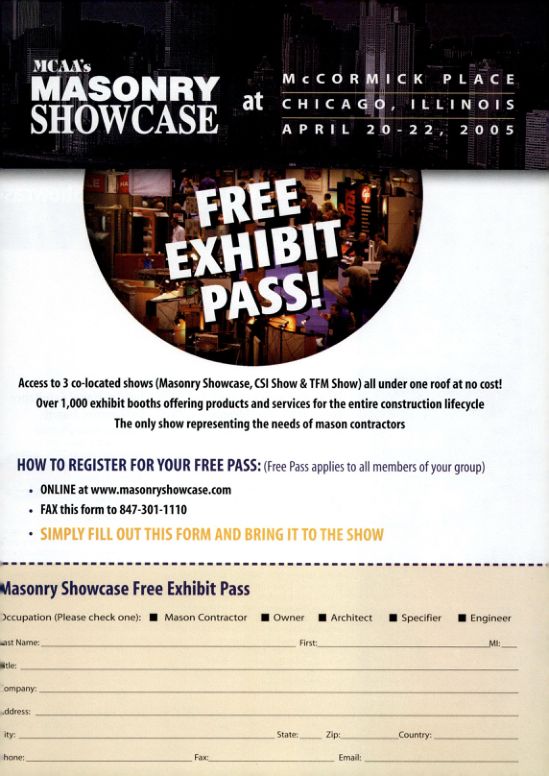 Access to 3 co-located shows (Masonry Showcase, CSI Show & TFM Show) all under one roof at no cost! Over 1,000 exhibit booths offering products and services for the entire construction lifecycle. The only show representing the needs of mason contractors.