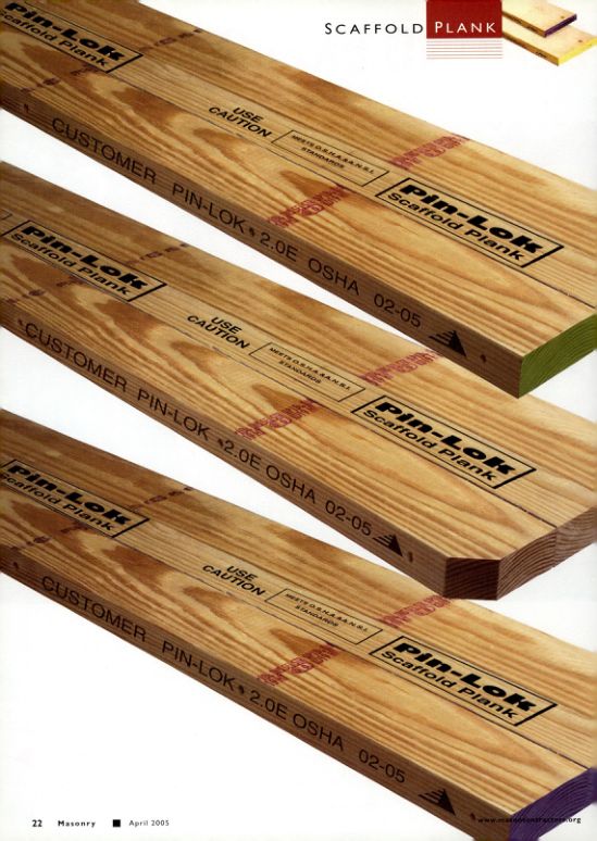 Pin-Lok Scaffold Plank. CAUTION. USE. MERTE OSHASANRE. Pin-Lok STANDARD. Scaffold Plank. CUSTOMER PIN-LOK 2.0E OSHA 02-05. 22 Masonry April 2005.