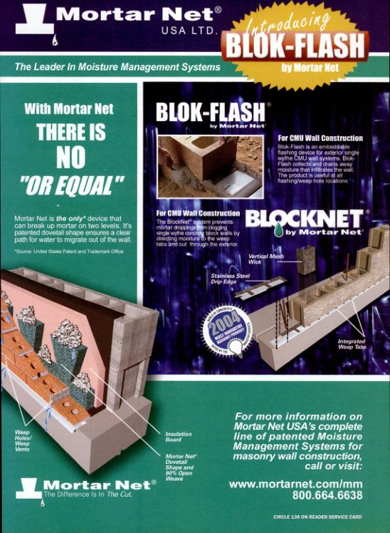 For more information on Mortar Net USA's complete line of patented Moisture Management Systems for masonry wall construction, call or visit: