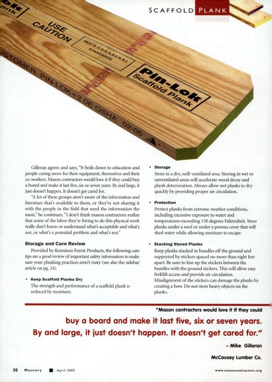 Provided by Kennison Forest Products, the following care tips are a good review of important safety information to make sure your planking practices aren't rusty (see also the sidebar article on pg. 24).