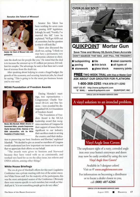 "The awards were given to Sessions and Norwood because they have voted with us so consistently, and worked very hard for us on the silica issue, tax reform and OSHA reform, among other things."