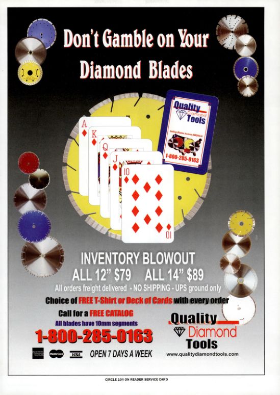 Quality Diamond Tools A K Q J 10 1-800-285-0163