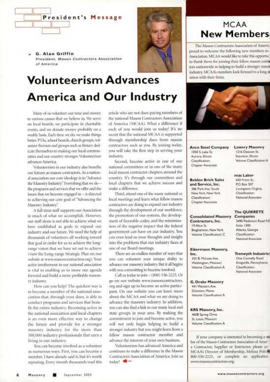 Volunteerism has advanced America and continues to make a difference in the Mason Contractors Association of America. Join us today!