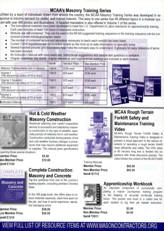 VIEW FULL LIST OF RESOURCE ITEMS AT WWW.MASONCONTRACTORS.ORG