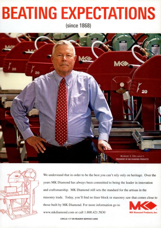 We understand that in order to be the best you can't rely only on heritage. Over the years MK Diamond has always been committed to being the leader in innovation and craftsmanship. MK Diamond still sets the standard for the artisan in the masonry trade. Today, you'll find no finer block or masonry saw that comes close to those built by MK Diamond. For more information go to www.mkdiamond.com or call 1.800.421.5830