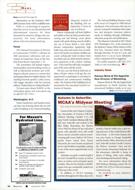 News continued from page 48. Information on the Institute's 2005-2006 Seminar Series will be available soon. MISL is a technological organization that serves as an educational and informational resource for those interested in masonry design and construction. For more information, please visit www.masonrystl.org.