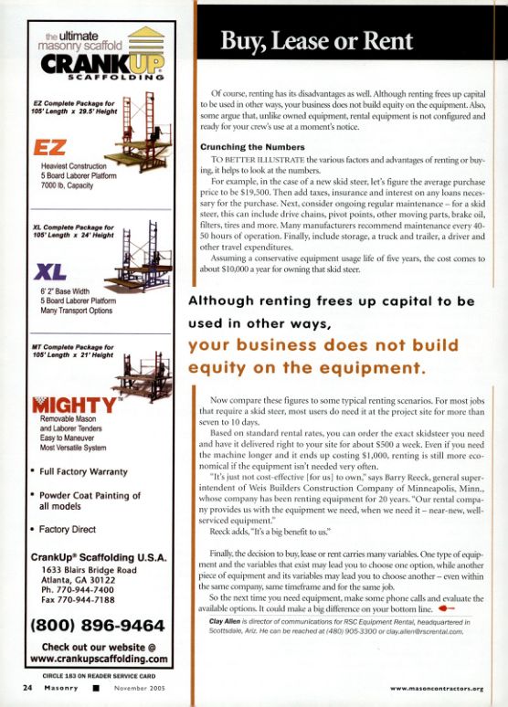 So the next time you need equipment, make some phone calls and evaluate the available options. It could make a big difference on your bottom line.