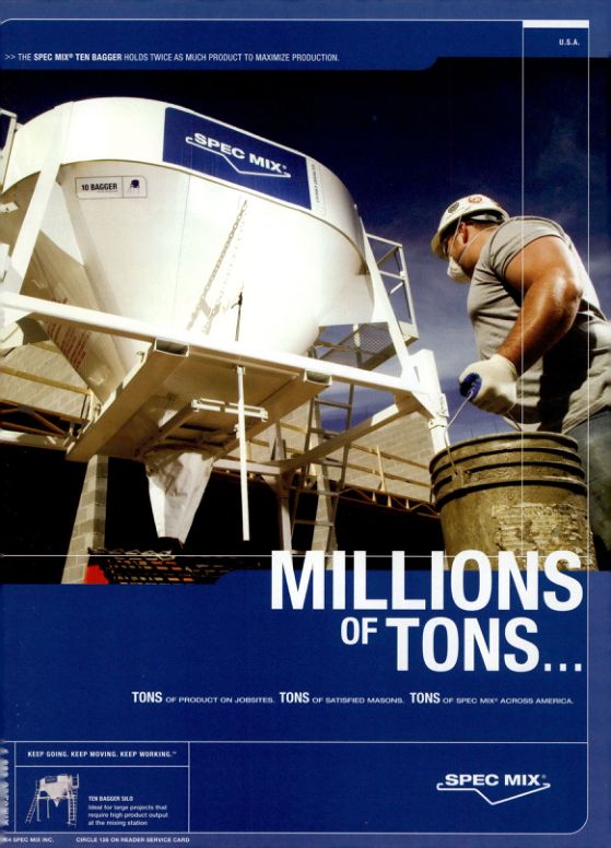 SPEC MIX U.S.A. Millions of tons of product on jobsites. Tons of satisfied masons. Tons of SPEC MIX across America. Keep going, keep moving, keep working.