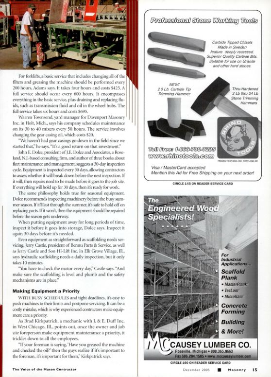 As Brad Kirkpatrick, a mechanic with J. & E. Duff Inc. in West Chicago, Ill., points out, once the owner and job site foreperson make equipment maintenance a priority, it trickles down to all the employees.
