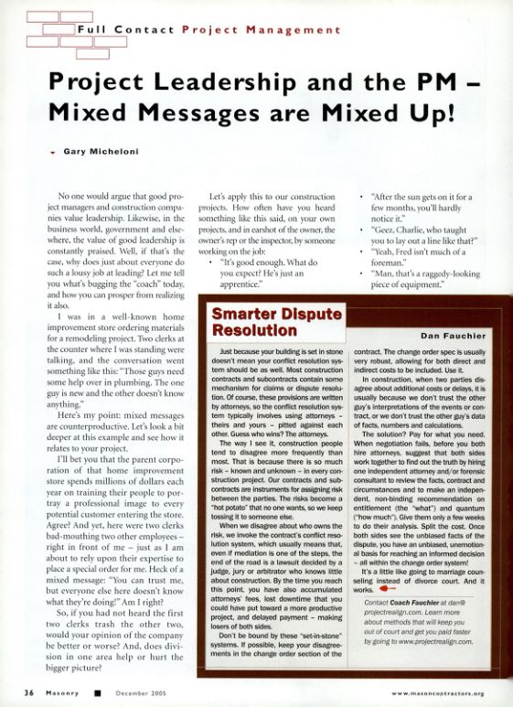 Contact Coach Fauchier at dan projectrealign.com. Leam more about methods that will keep you out of court and get you paid faster by going to www.projectrealign.com.