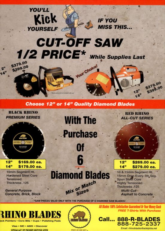 *SAW PRICES VALID ONLY WITH THE PURCHASE OF 6 DIAMOND SAW BLADES!