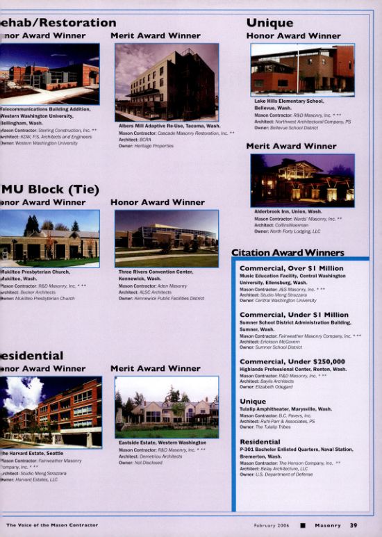 Mason Contractor: Cascade Masonry Restoration, Inc.
