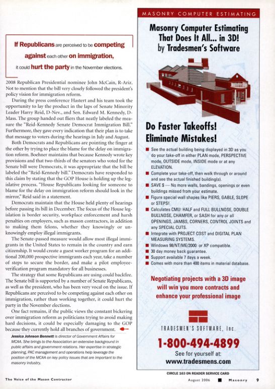 Democrats maintain that the House held plenty of hearings before passing its bill in December. The focus of the House legislation is border security, workplace enforcement and harsh penalties on employers, such as mason contractors, in addition to making them felons, whether they knowingly or unknowingly employ illegal immigrants.