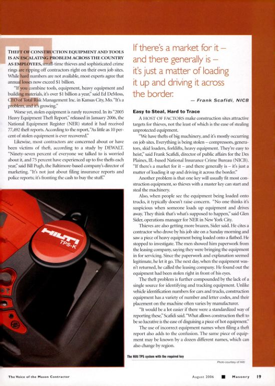 Heavy Equipment Theft Report," released in January 2006, the