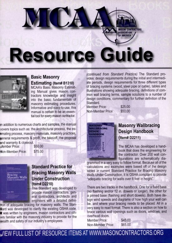 VIEW FULL LIST OF RESOURCE ITEMS AT WWW.MASONCONTRACTORS.ORG