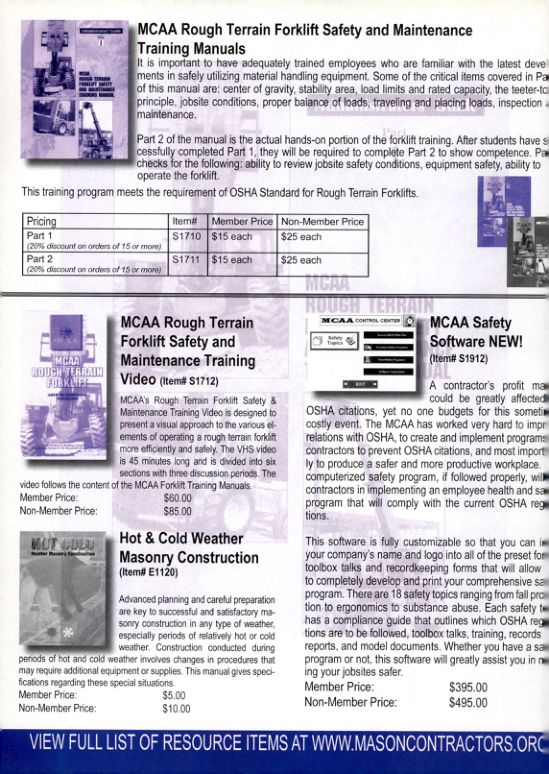 VIEW FULL LIST OF RESOURCE ITEMS AT WWW.MASONCONTRACTORS.ORC