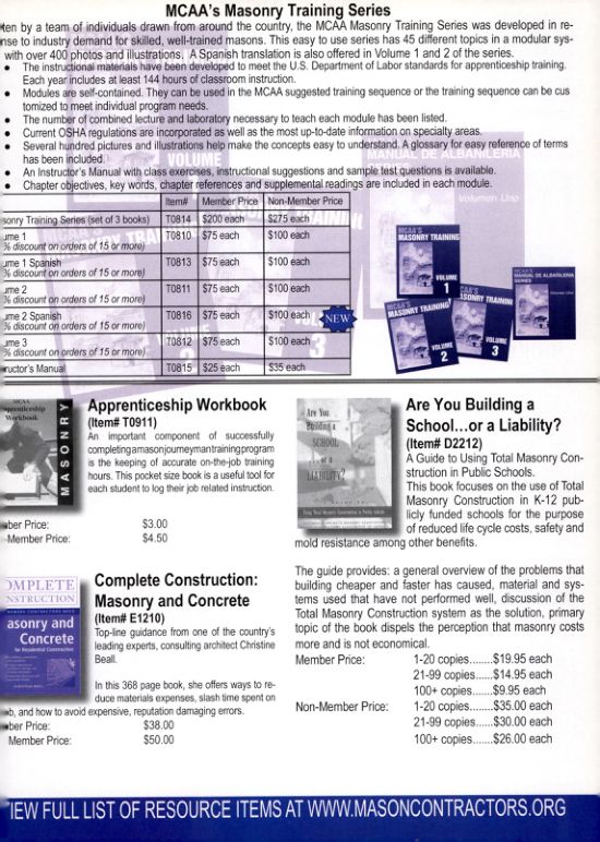 "IEW FULL LIST OF RESOURCE ITEMS AT WWW.MASONCONTRACTORS.ORG