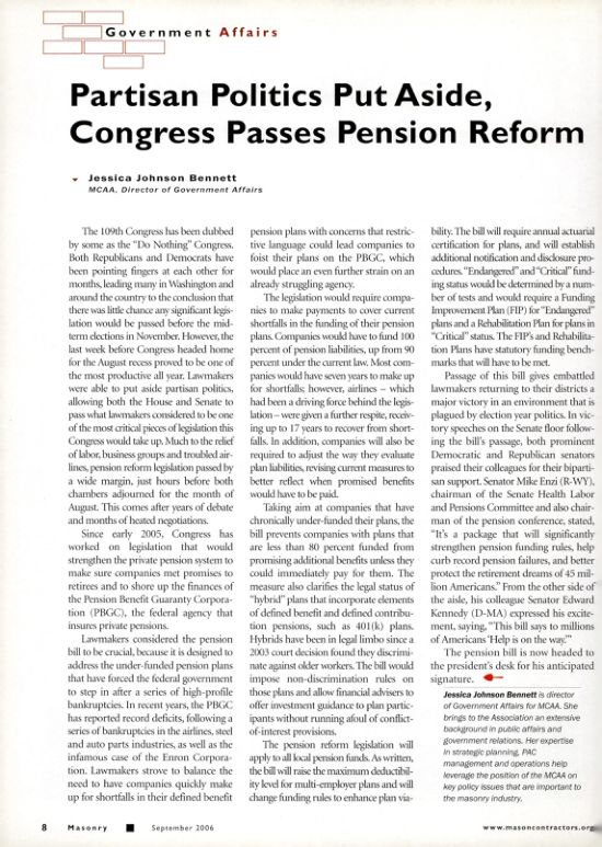 The 109th Congress has been dubbed by some as the "Do Nothing" Congress. Both Republicans and Democrats have been pointing fingers at each other for months, leading many in Washington and around the country to the conclusion that there was little chance any significant legislation would be passed before the mid-term elections in November. However, the last week before Congress headed home for the August recess proved to be one of the most productive all year. Lawmakers were able to put aside partisan politics, allowing both the House and Senate to pass what lawmakers considered to be one of the most critical pieces of legislation this Congress would take up. Much to the relief of labor, business groups and troubled airlines, pension reform legislation passed by a wide margin, just hours before both chambers adjourned for the month of August. This comes after years of debate and months of heated negotiations.