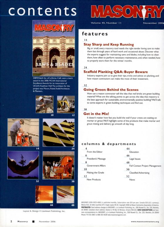 Mexico $32, all other countries $79. Single copies 55.50. Copyright 2006 by Mason Contractors Association of America.