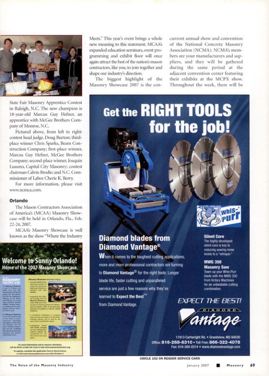 The Mason Contractors Association of America's (MCAA) Masonry Showcase will be held in Orlando, Fla., Feb. 22-24, 2007.