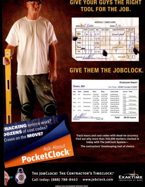 THE JOB CLOCK THE CONTRACTOR'S TIMECLOCK™