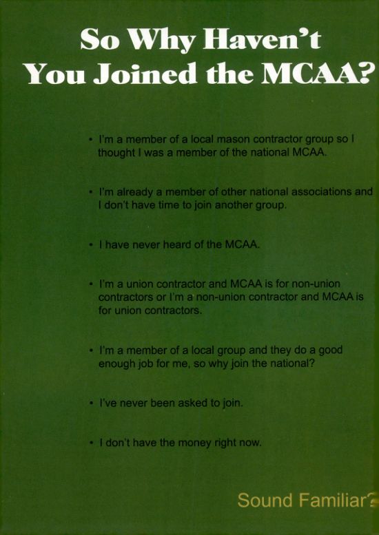 * I'm a member of a local mason contractor group so I thought I was a member of the national MCAA.
