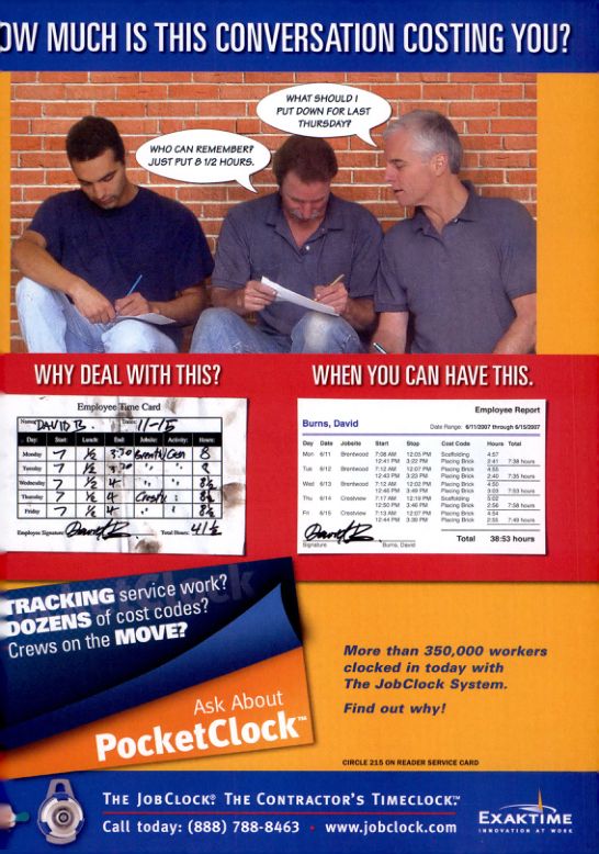 THE JOB CLOCK. THE CONTRACTOR'S TIMECLOCK™