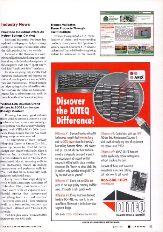The Voice of the Masonry Industry Tremco Validates Three Products Through SWR Institute