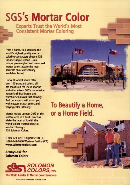 Mortar makes up over 20% of the surface area in a brick structure. Make the most of it with the world's most trusted name in mortar coloring, SGS Solomon Colors.